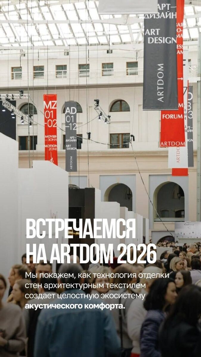 💫 С нашим новым продуктом ТИХИЕ СТЕНЫ Что вас ждет? ➡️ 32 000 кв.м. трендов и инноваций от 450+ мировых брендов. ➡️ Экспозиция в коллаборации с выдающимся дизайнером. ➡️ Опыт, который вы «услышите кожей». Ждем вас 19-21 февраля в Экспо центре Крокус в Москве! Посетить выставку: 👉https://artdom-design.ru/