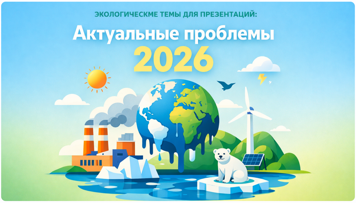 Сдать курсовую через неделю, а тема по экологии только на стадии «погуглить что-нибудь» — знакомо? Экологические проблемы сейчас не просто модный тренд, это реальность: температура растет на 0,2 градуса за десятилетие, пластик нашли даже в тканях человека, а половина мировых лесов исчезла за последние 100 лет. В 2026-м на конференциях, в конкурсах и дипломных работах хотят видеть не общие фразы про «спасем планету», а конкретику — цифры, региональные кейсы, решения через ИИ. Когда у меня было три дня на защиту проекта по устойчивому развитию, воспользовался Presentacium — загрузил текст про загрязнение Азовского моря, выбрал строгий шаблон, за 3 минуты получил слайды с инфографикой и стоковыми фото. Дальше просто подкрутил акценты в редакторе. В этой статье — 30+ актуальных тем для презентаций, разбитых по категориям: от глобального потепления до апсайклинга отходов. Плюс практические советы, как структурировать доклад и не утонуть в общих словах. Если нужна презентация завтра, здесь найдете и темы, и инструменты для быстрого старта.