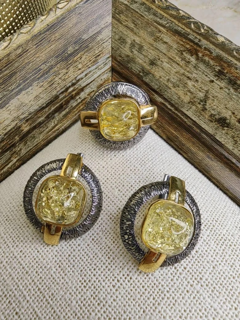 Серебро 925, чёрный родий , позолота 18 карат, природный натуральный янтарь.