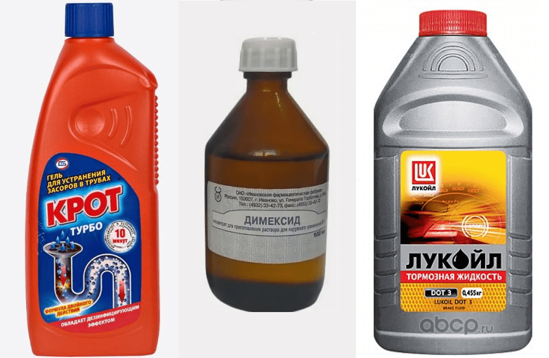 Димексид - почти не воняет и обычно (без долгого контакта) не вредит пластику, но растворяет смолу. Важно: проникает через кожу даже без повреждений.