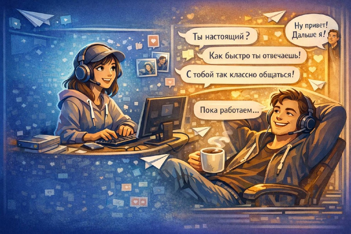 Хьюманизация. Нет. Здесь я 😆✨ Речь о проекте. Парень занимается своими делами. Нужно было автоматизировать общение с клиентами. В общем что зачем и как не могу писать да и не буду раскрывать карты😃 Коротко есть акк в телеграмм. Общается как молодой парень. Капец как живо. Все дела…имитация общения. Имитация «печатает…». Задержки по времени динамическая. Когда надо подключается человек и продолжает общаться) Читает фото которые отправляют. Все кайф. Отвечает на все сообщения разом (если много отправили) В общем обратная связь вчера была от него и видел как реагируют клиенты😃 - не отличить от живого. Очень интересный проект) Тут есть еще такое момент, который хочу доработать😅 Короче: сделать динамический статус «печатает…» зависящий от количества символов. Сейчас работает это так. ИИ пишет, и отправляется на 3 сек статус «печатает…». И все. Так технически заложено. А что если сделать так?) 100 символов 3 секунды. Более значит уже 6 секунд и тп😃 Что это дает? А то что уж