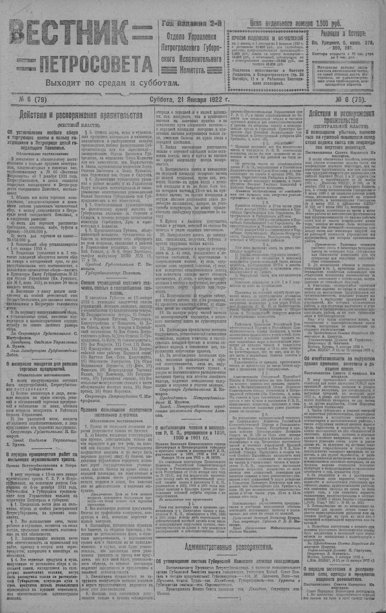 В 1922 году «Правила пользования городскими железным дорогами» публиковали в «Вестнике Петросовета» мелким шрифтом. Всего 15 пунктов. Отмечаем, что бесплатно ездят дети младше 5 лет, никаких животных, просят не затруднять кондуктора мелкими деньгами. Старорежимные какие выражения. Насколько мелкими деньгами? А вот: проезд 3000 руб, штраф 50000 руб.