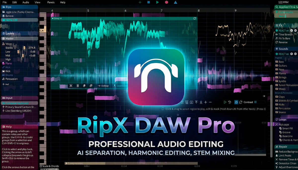Полный разбор Референсный продакшн — один из самых эффективных способов обучения. Когда ты можешь разобрать трек, который тебя вдохновляет, на составные части — вокал, бас, ударные, мелодические элементы — ты получаешь доступ к анатомии профессионального микса. Раньше для этого нужны были мультитреки, которые практически невозможно достать. Сегодня AI-сепараторы изменили правила игры. Но не все инструменты одинаковы. RipX DAW Pro — продукт британской компании Hit'n'Mix. Это не онлайн-сервис и не плагин. Это полноценная DAW, основная идея которой — деконструкция и редактирование существующего аудио. Программа использует собственные AI-алгоритмы для разделения любого аудиофайла на отдельные слои. Но, в отличие от большинства конкурентов, на этом работа только начинается. Официальный сайт: hitnmix.com