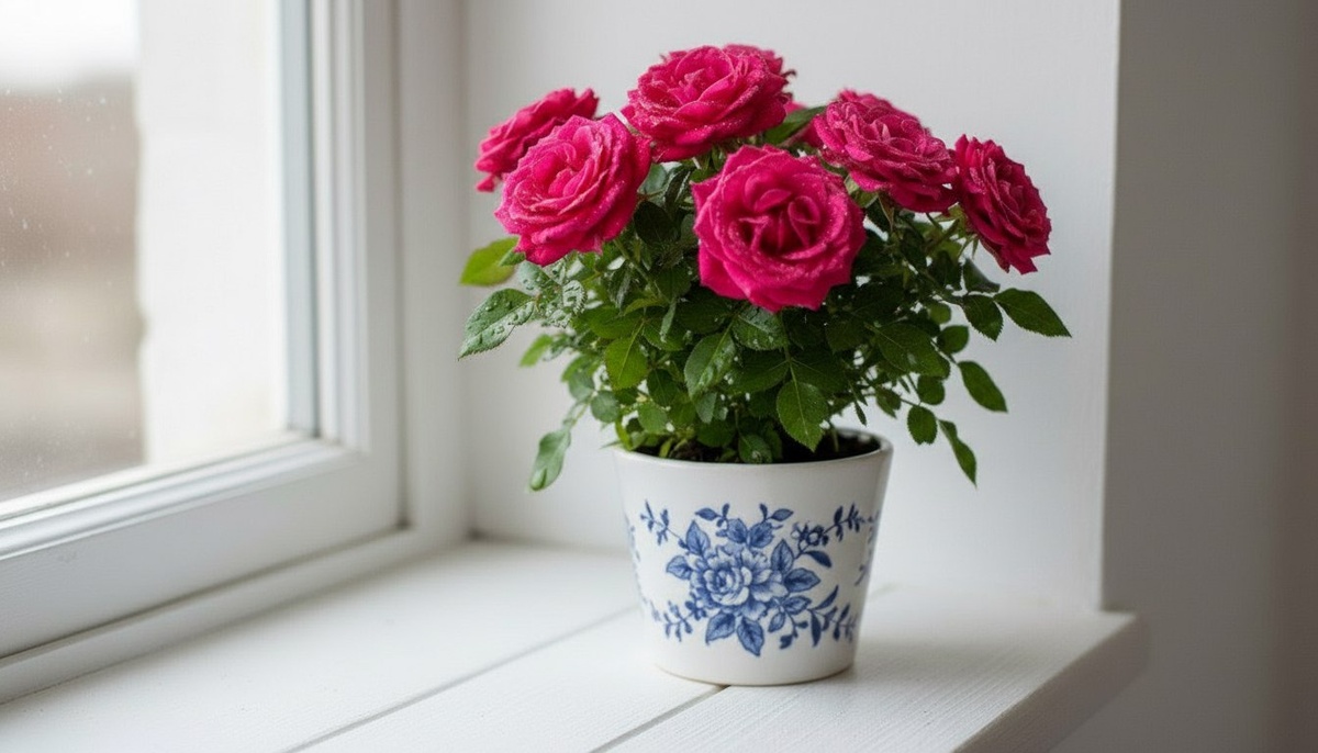 Комнатная роза не капризная — она просто голодная. Магазинный грунт истощён, маленький горшок не держит питание. Без подкормок цветения не будет.