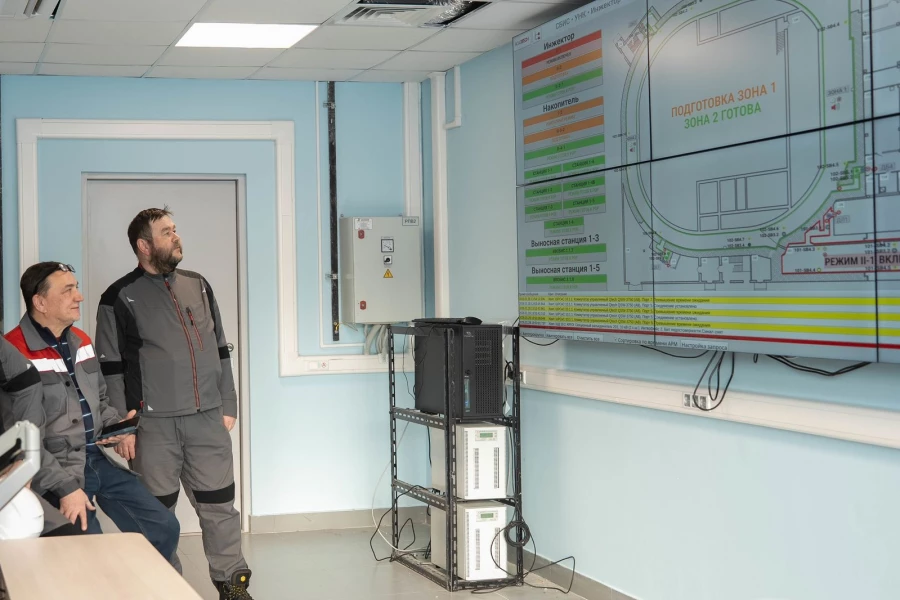 В корпусе электрохозяйства Центра коллективного пользования «Сибирский кольцевой источник фотонов» запущен Центральный пункт автоматизированного управления инженерными системами. Он уже работает в тестовом режиме и вскоре возьмет под круглосуточный контроль все инженерные сети и системы безопасности исследовательского комплекса. СКИФ — сложный инженерный и научный объект, требующий высокой стабильности условий работы. Температура в помещениях с ускорительным оборудованием должна поддерживаться с точностью до 0,1 градуса Цельсия. Охлаждение оборудования и работа инженерных сетей должны быть безотказными, поскольку остановка эксперимента ведет к потере времени и ресурсов. В ручном режиме контролировать все параметры невозможно, поэтому для управления создана автоматизированная система. Разработкой и изготовлением системы занималась группа компаний «СКАД тех» по заказу генерального подрядчика строительства — АО «КОНЦЕРН ТИТАН-2». В настоящее время специалисты проводят пусконаладочные рабо