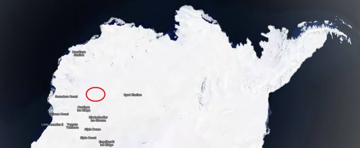 Толщина ледникового покрова составляет 500—2000 м. Координаты: 79°30′ ю.ш. 150°00′ з.д. (между горами Александра I и шельфовым ледником Росса).