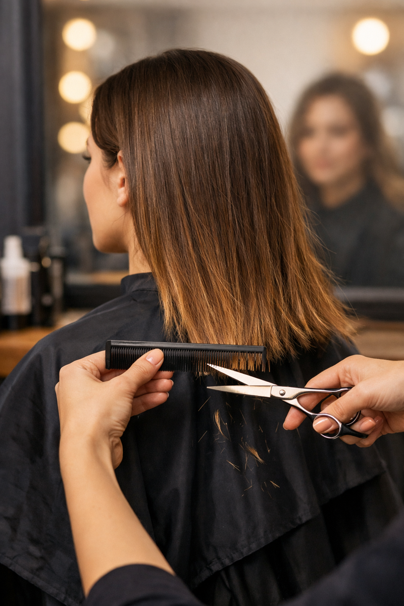 Если не убрать повреждённый участок, расслоение будет подниматься выше. Именно поэтому своевременная стрижка — это способ сохранить общую длину, а не потерять её.