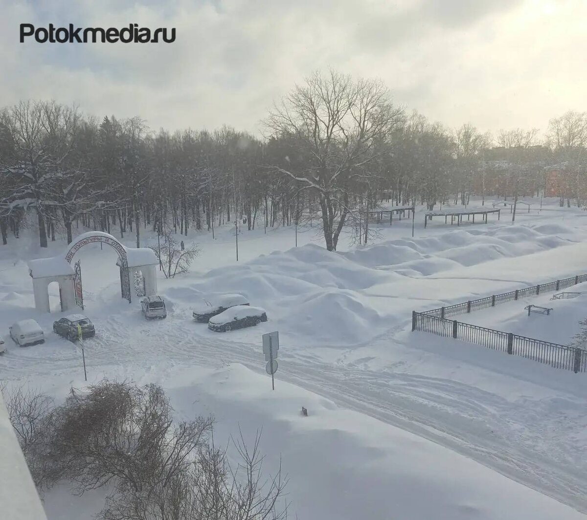 Местные жители рассказывают, что местами в городе снежные барханы как в Воркуте. Городские школы сегодня из-за непогоды перешли на дистанционное обучение. 📸 Фото: ИА «МедиаПоток»