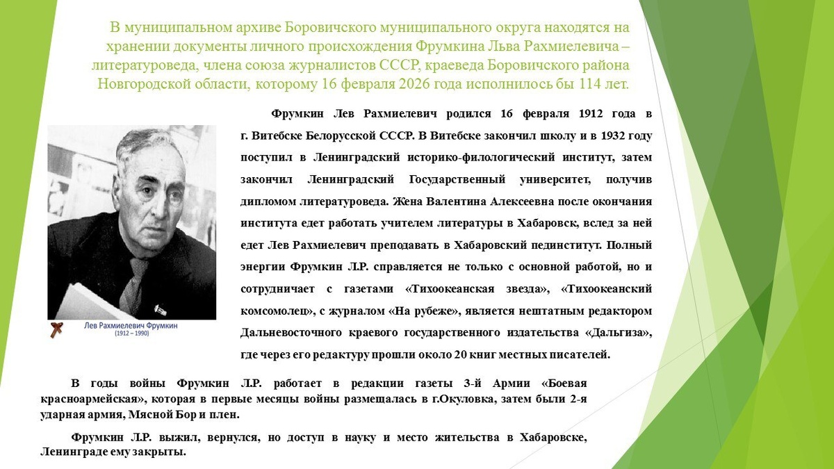 16 февраля выдающемуся литературоведу и краеведу Льву Рахмиелевичу Фрумкину исполнилось бы 114 лет.