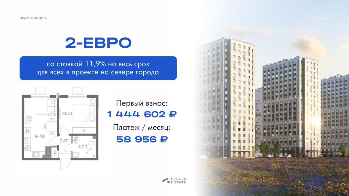 Если устали отдавать деньги за чужую квартиру — вот расчёт, который может изменить ситуацию: ▪️ первый взнос — 1 444 602 ₽ ▪️ ежемесячный платёж — 58 956 ₽ Ставка фиксированная на весь срок — платеж не вырастет. За эти же деньги, которые вы отдаете за аренду, можно платить ипотеку и жить в своей квартире с чистовой отделкой под ключ и городской пропиской. Квартира подойдет тем, кто: ▪️ хочет съехать с арендной в собственное жильё; ▪️ покупает первую квартиру — студенту или ребёнку; ▪️ делает старт в Петербурге с небольшим первым взносом. 👉🏻 Оставьте заявку — подберём квартиру под ваши условия