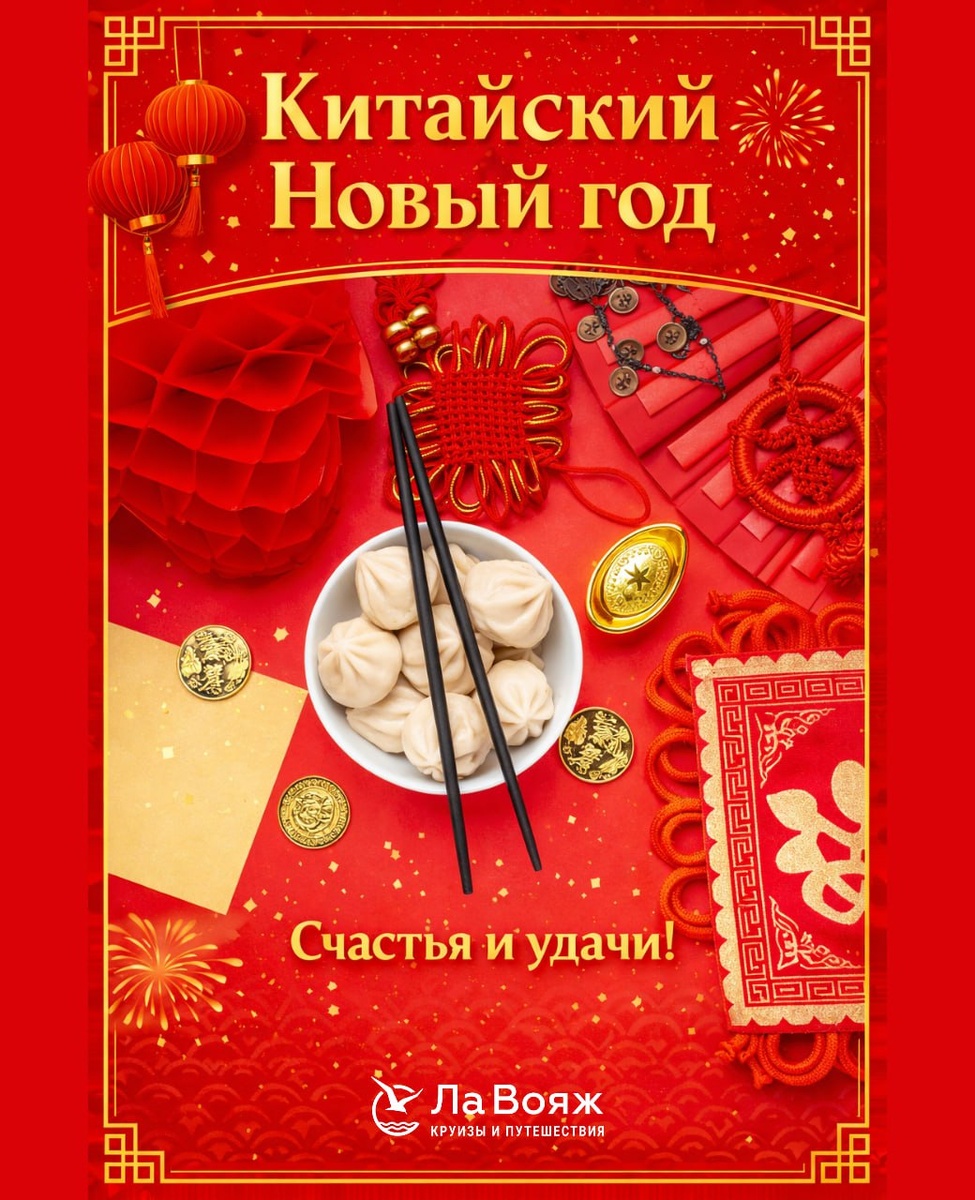 Если вам кажется, что Новый год бывает только “31 декабря — салат — салют”, Китай готов перевернуть это представление. Здесь Новый год — это 15 дней огней, легенд, вкусов и шумных улиц, где каждый уголок будто говорит: «Смотри, запоминай, пробуй!» 🎇 Что делает Китайский Новый год таким особенным? Это не один вечер, а целое путешествие по традициям. Праздник начинается в новолуние (дата каждый год меняется) и заканчивается Фестивалем фонарей — когда улицы превращаются в море света, а небо — в живую открытку. 🧧 Главные символы — и что они означают Красный цвет — не просто “красиво”, а “пусть удача зайдёт без стука”. Красные фонари, конверты, вывески — город становится ярче буквально на глазах. Красные конверты (хунбао) — традиция дарить деньги “на удачу”. Даже если вы турист, вы точно увидите, как это работает: улыбки, шутки, семейные ритуалы. Фейерверки — здесь это целая философия: шумом “отпугивают” неудачу. 🐲 Львы, драконы и улицы, которые живут Вы можете оказаться в толпе,