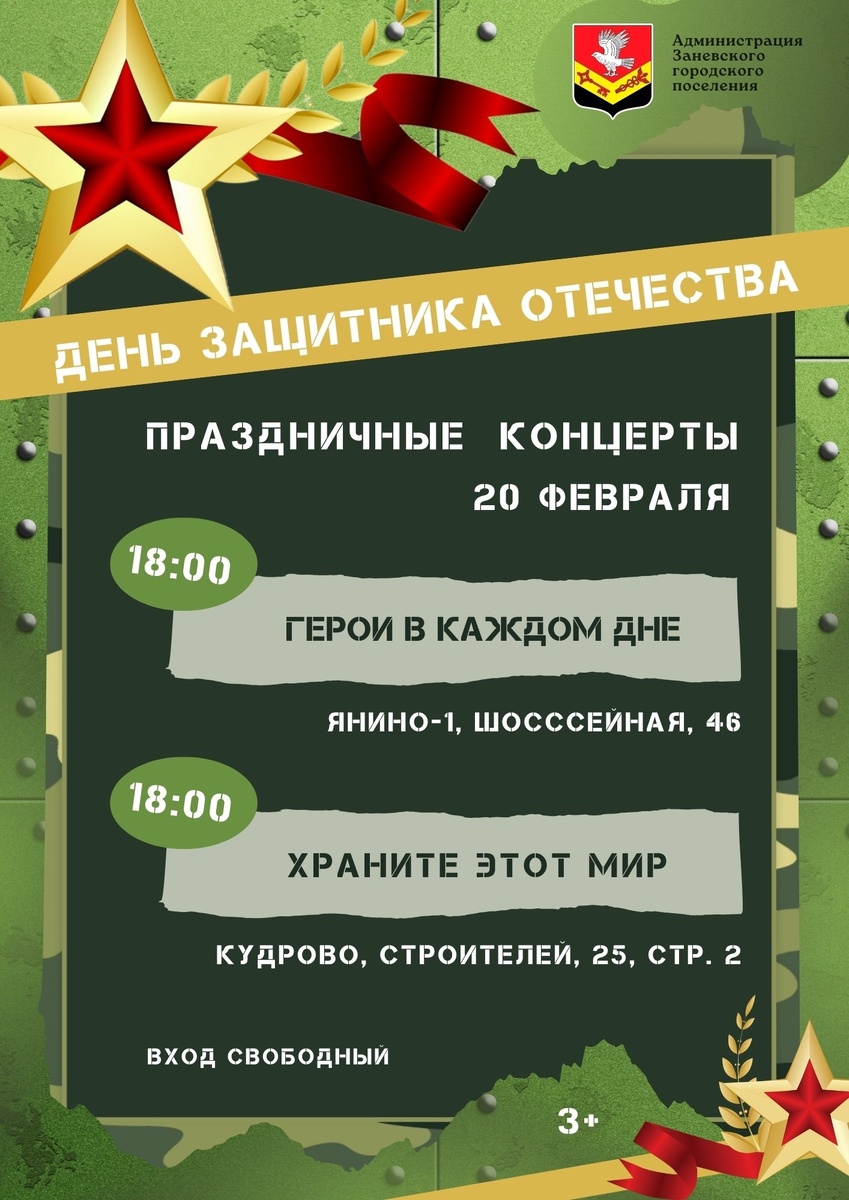 🎉 Приглашаем на праздничные концерты, посвящённые Дню защитника Отечества
