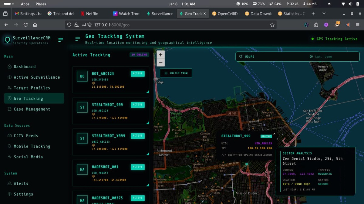 🔎 GeoSentinel — геопространственная платформа мониторинга, отслеживающая перемещения по всему миру в режиме реального времени