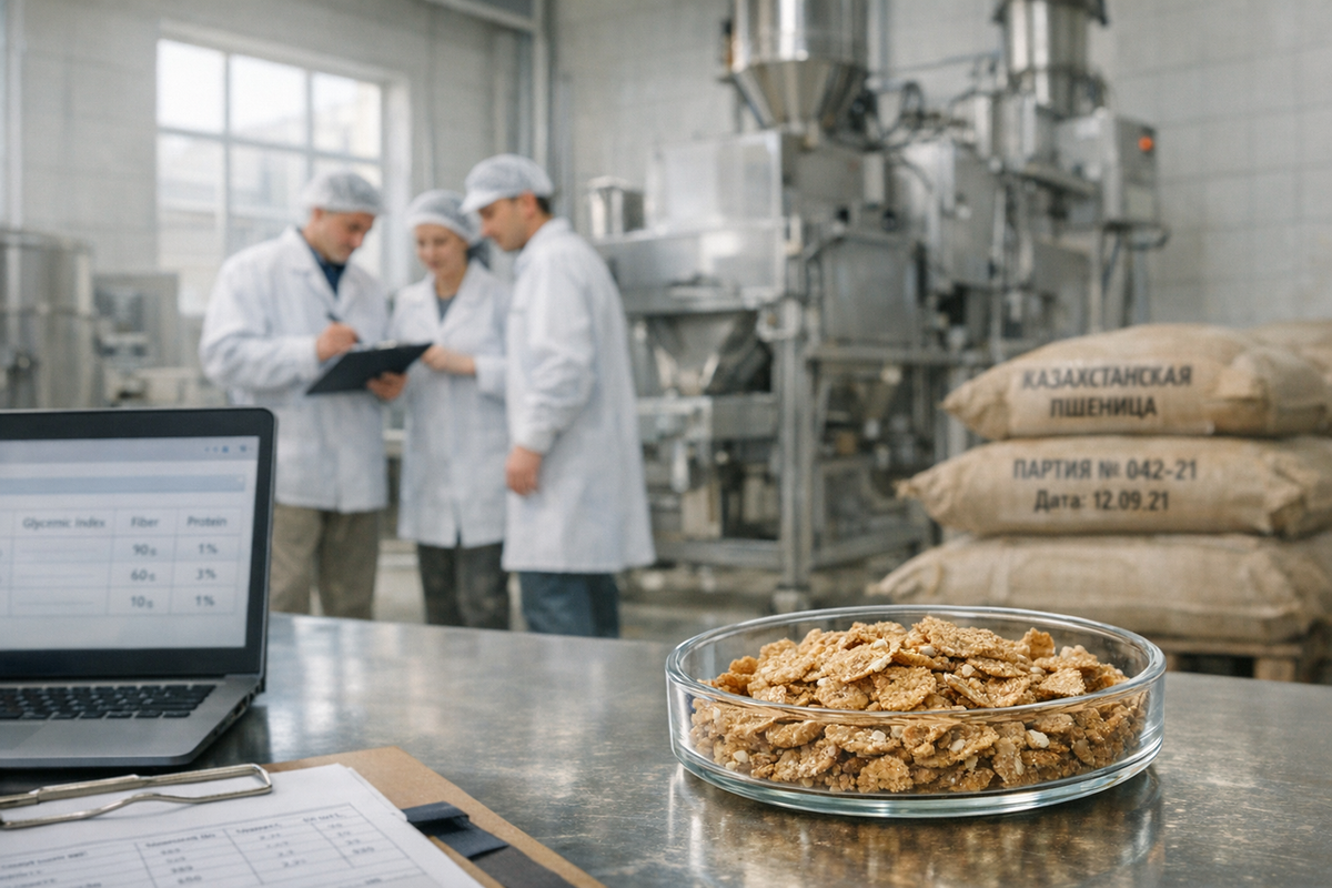Разработка сухих завтраков нового поколения основана на технологической переработке казахстанского зернового сырья с сохранением структурных компонентов оболочки и зародыша. В отличие от традиционных экструдированных хлопьев, где значительная часть пищевых волокон и биологически активных веществ разрушается в процессе глубокой термической обработки, новая технология ориентирована на минимизацию потерь. По данным разработчиков, продукт сохраняет до 80 процентов природных пищевых волокон и микроэлементов, включая магний, цинк и витамины группы B. Особое внимание уделено низкому гликемическому индексу, который планируется удерживать в диапазоне 35–45 единиц, что существенно ниже показателей массовых сладких завтраков, часто превышающих 70 единиц.