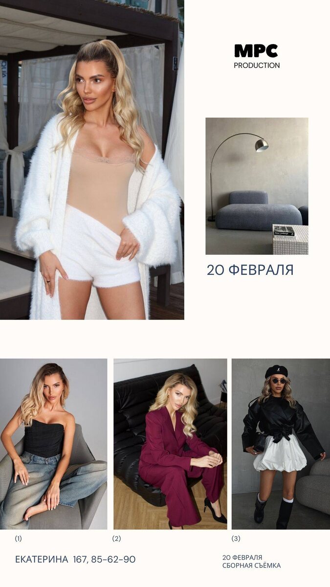 ! ✨ Модель Екатерина! Рост: 165 см Параметры: 85/62/90 📌Выбирайте локацию: ✔ Белый или серый фон ✔ Стильный интерьер 📎Наши пакеты: Каталог: 2 900 р. за 1 артикул (15 фото). MPCstudio: 8 000 р. — максимум сервиса! СПЕЦИАЛЬНОЕ ПРЕДЛОЖЕНИЕ - СЛОЖНЫЙ СВЕТ БЕЗ ДОПЛАТ ❗️ 🎁 Бонус: от 5 артикулов = видеорилс в подарок! Не упустите шанс! Пишите менеджеру: @mpcont_help Портфолио и отзывы — по ссылке: https://t.me/mpcontent_result *фото из портфолио модели