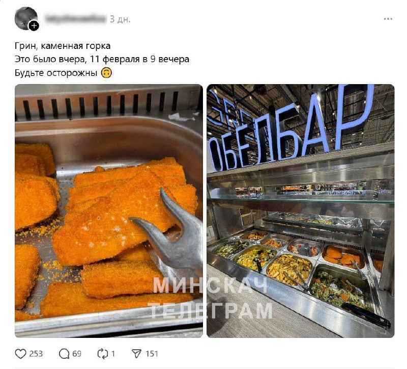 Притыцкого, 156 обнаружили жареную рыбу с плесенью Проверку провёл центр гигиены и эпидемиологии Фрунзенского района — факт продажи недоброкачественной продукции подтвердился. В отношении предприятия торговли приняты меры за нарушение санитарно-эпидемиологических требований. ✔️ Минскач • Подписаться