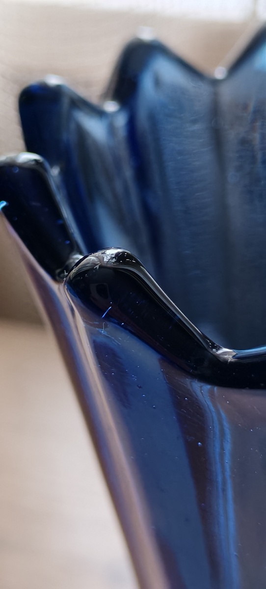 История эта началась году эдак в 1975-76. Я тогда училась в школе. У моей бабушки – Софьи Алексеевны - была синяя стеклянная ваза в виде колокольчика. И так эта Ваза мне нравилась, что стала я ее просить у бабушки. Ну, чтобы она разрешила мне забрать ее домой. Это сейчас возникает вопрос: «Зачем?». Но тогда я так хотела, чтобы эта ваза была моей. Моим сокровищем. Наконец бабушка сдалась…Повезла я эту чудесную вазу домой и, как и следует ожидать, по дороге стукнула обо что-то авоськой и привезла домой разбитую вазу. Как ругала меня мама и как горько я рыдала остается только догадываться. Бабушка ничего не сказала, когда узнала. Только покачала головой и вздохнула. С тех пор прошло 50 лет. Я уже, по сравнению с возрастом «фарфора», сама в антикварном возрасте. Но эта ваза много раз всплывала в моей памяти разбитой мечтой и горьким воспоминанием детства. И вот решила я все-таки разыскать такую же. Но только именно такую же, а не похожую (как говорил мой сын в детстве: «Такая же, но совсем