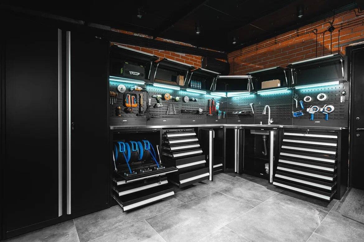 Угловой комплект OBSIDIAN 19-2 — один из наших премиальных решений для идеального рабочего пространства. 🟡Выдвижные ящики, шкафы, раковина, коммуникации — всё продумано до мелочей. 🟡Любой модуль можно заменить под ваши задачи. Уточнить комплектацию и рассчитать проект стеллажа вы можете у наших специалистов.
