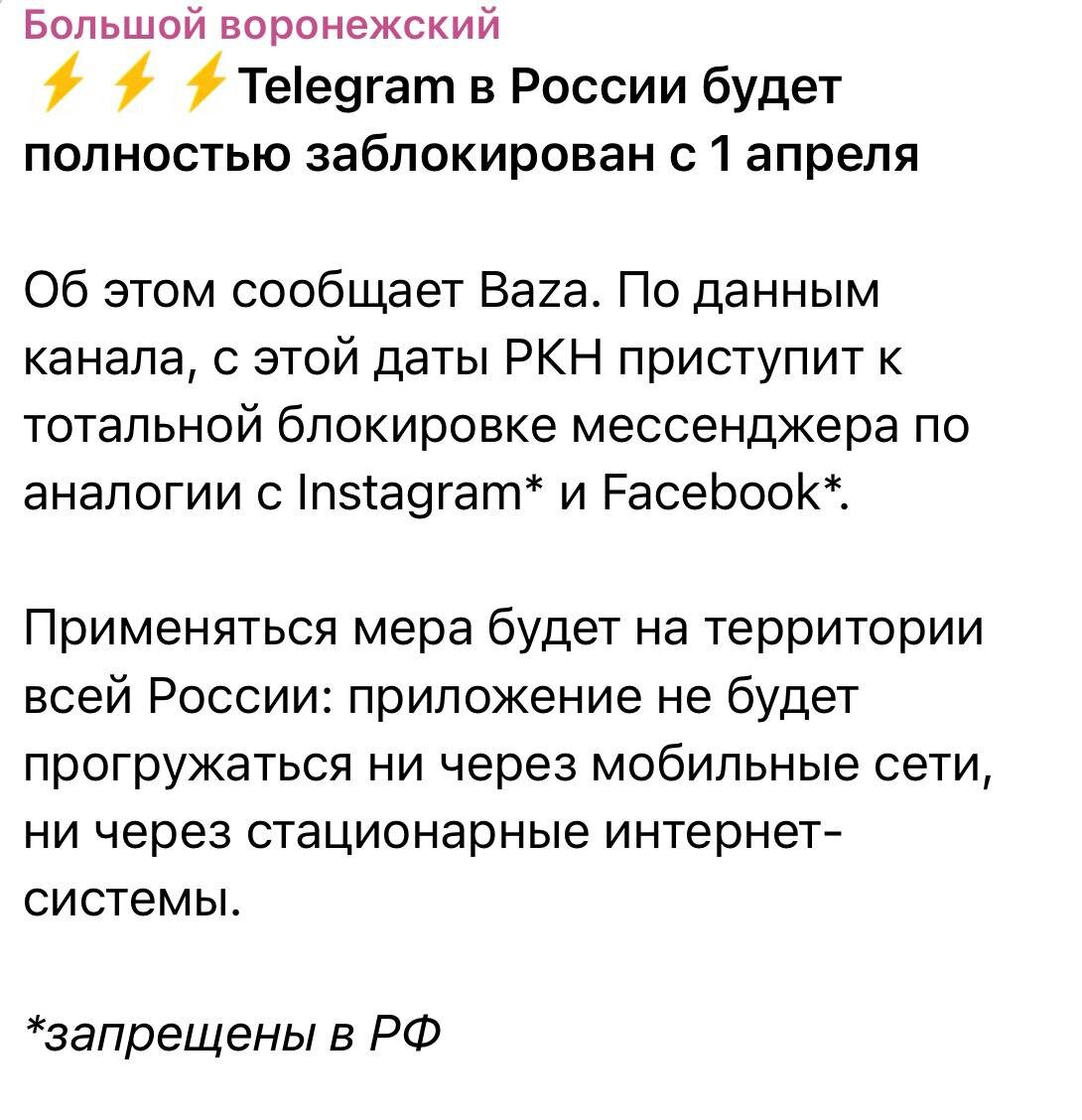 Телеграм настигнет блокировка и уже известны даты