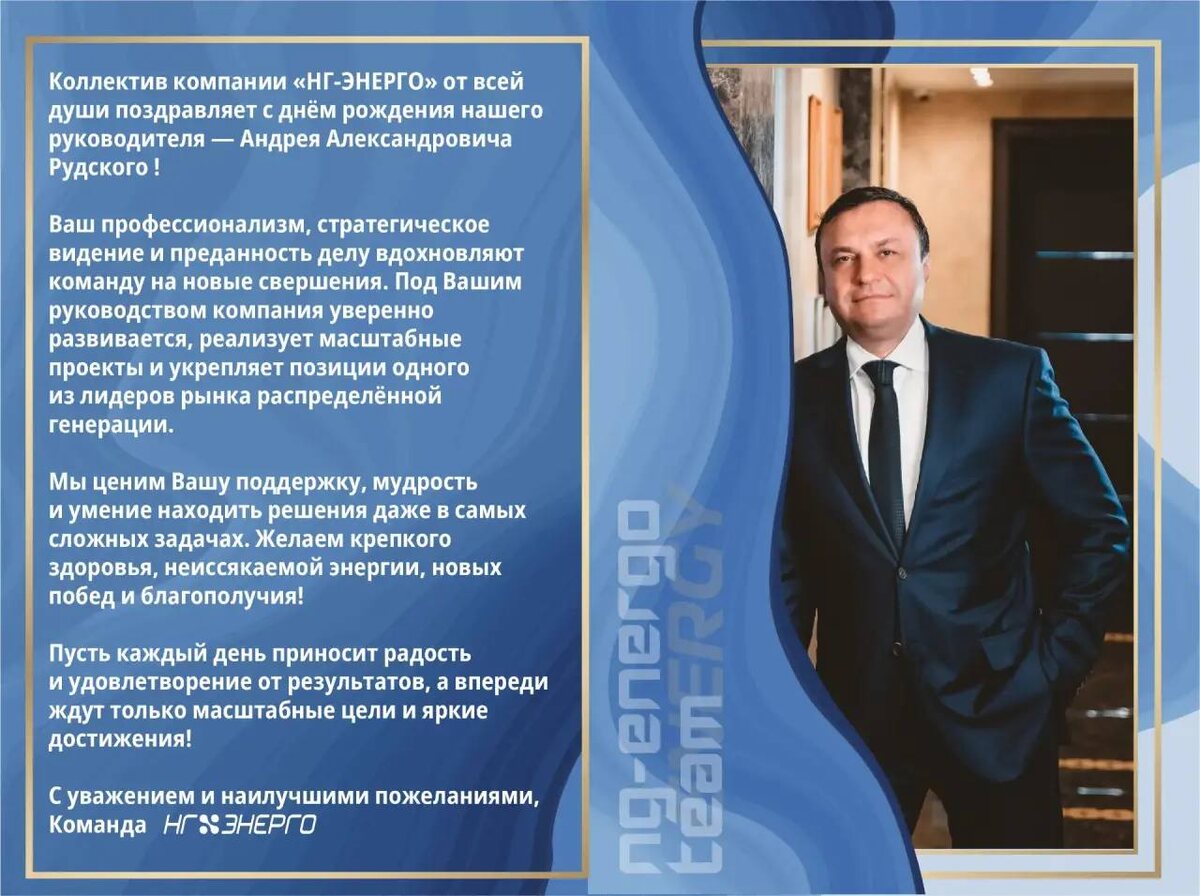 Коллектив компании «НГ-ЭНЕРГО» от всей души поздравляет с днём рождения нашего руководителя — Андрея Александровича Рудского