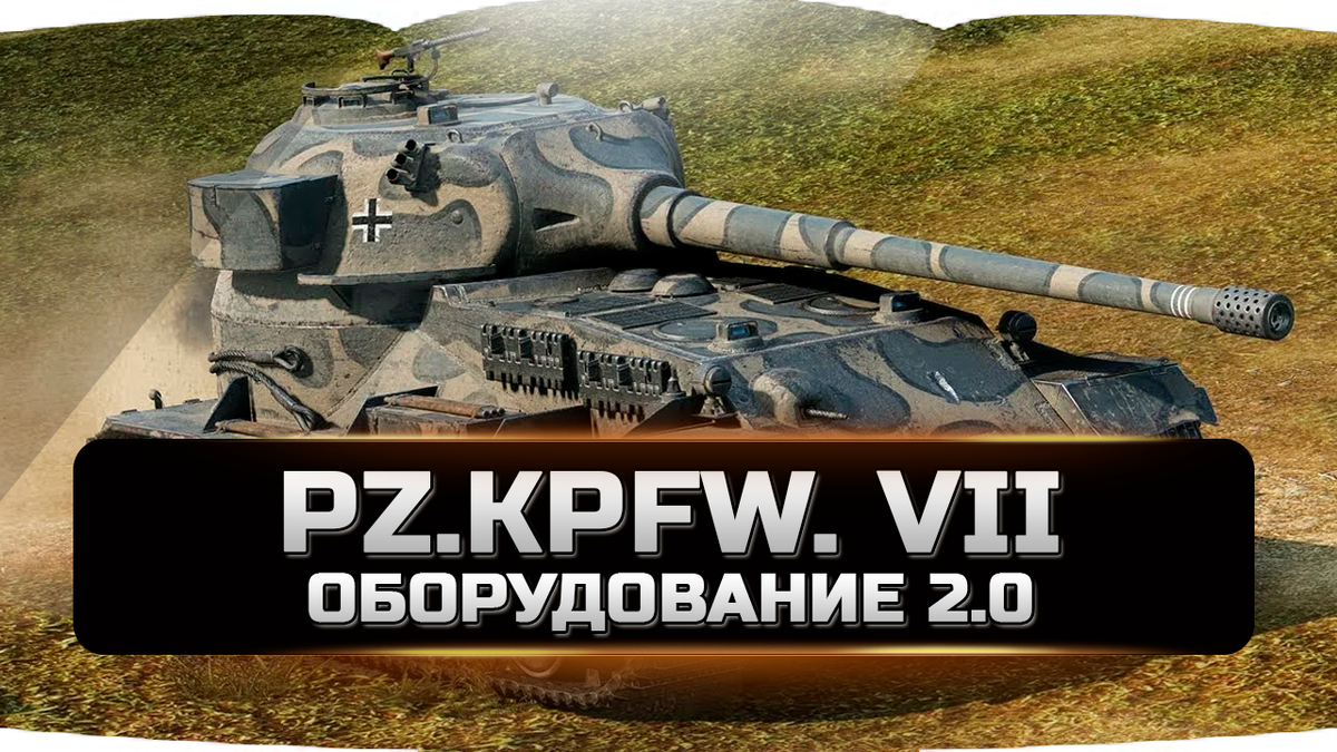 В танке служит 5 членов экипажа: Огневая мощь Живучесть Мобильность Незаметность Наблюдение и связь Экономические показатели Ключевые особенности и роль в бою Pz.Kpfw. VII выделяется: Слабые стороны: В обновлении 1.26 танк получил улучшения: Роль в игре — штурмовой танк. Предназначен для: Улучшенная закалка: +8% / +10% к запасу прочности машины. Увеличивает прочность машины, грузоподъёмность, скорость ремонта ходовой, а также уменьшает получаемый корпусом урон от падения (в случае падения на ходовую). Также позволяет полностью восстановить прочность ходовой после ремонта. Снижает шанс «потери» гусеницы при получении ей урона и позволяет дольше оставаться на ходу. Орудийный досылатель: -10% / -11,5% от времени заряжания. Быстрее перезарижаетесь, быстрее наносите урон, больше урона в минуту. Противоосколочный подбой: Уменьшение урона от осколочно-фугасного урона, поглощаемого бронёй, и тарана. Например, за сверхтяжёлый подбой прибавка к абсорбции повреждений от взрыва — 50