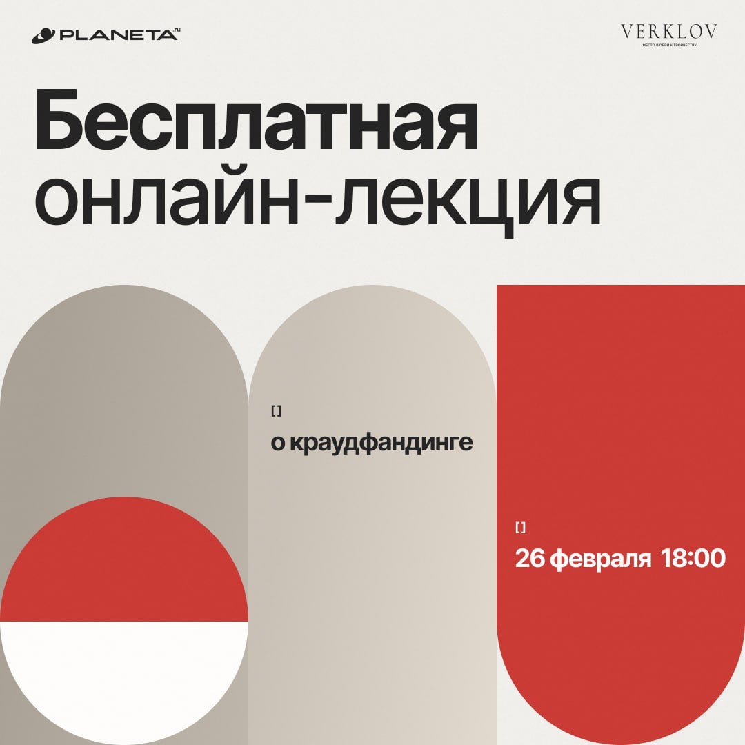 Как привлечь средства на творческий или социальный проект с помощью краудфандинга? С чего начать, какие ошибки совершают новички и как повысить шансы на успешный сбор – на бесплатной лекции расскажет ведущий продюсер крауд-проектов Planeta.ru Ольга Герман при партнерстве с VERKLOV.ДОМ. Для кого: художников, дизайнеров, музыкантов, авторов и всех, кто развивает творческие и социальные проекты. 📚 В программе: