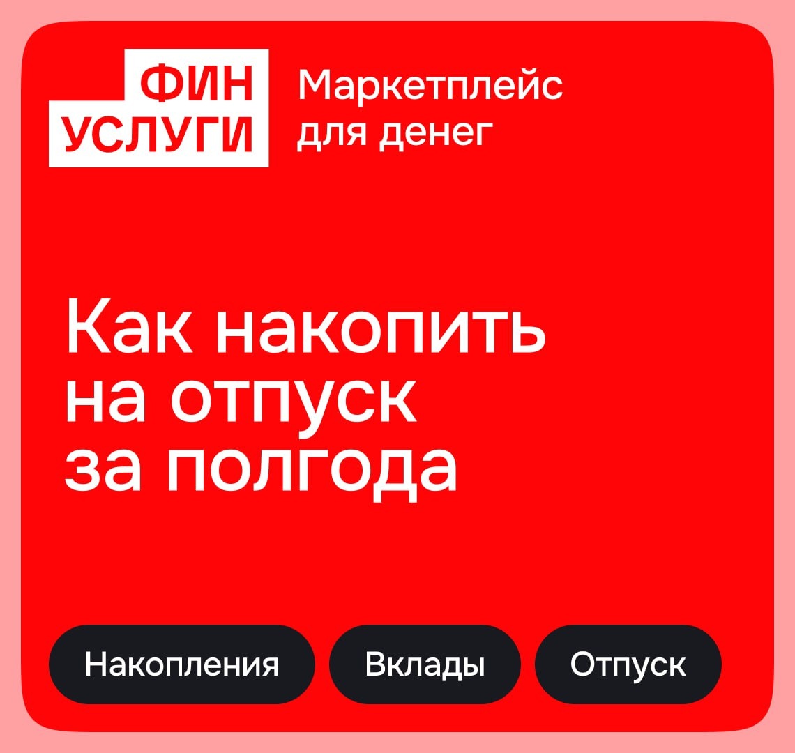 🫠) Если до отпуска осталось полгода, а денег на него пока нет — это не повод откладывать мечты. В Журнале рассказали, как собрать нужную сумму, даже если откладывать получается не идеально и не каждый месяц. А подходящий вклад под такую цель можно выбрать на Финуслугах😉 ❄️❄️❄️❄️❄️❄️ Читайте нас в 🔹