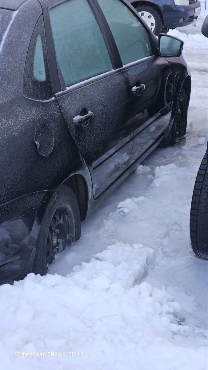 Скованные во льдах. В Курске автомобили вмерзли в лёд после резкого похолодания