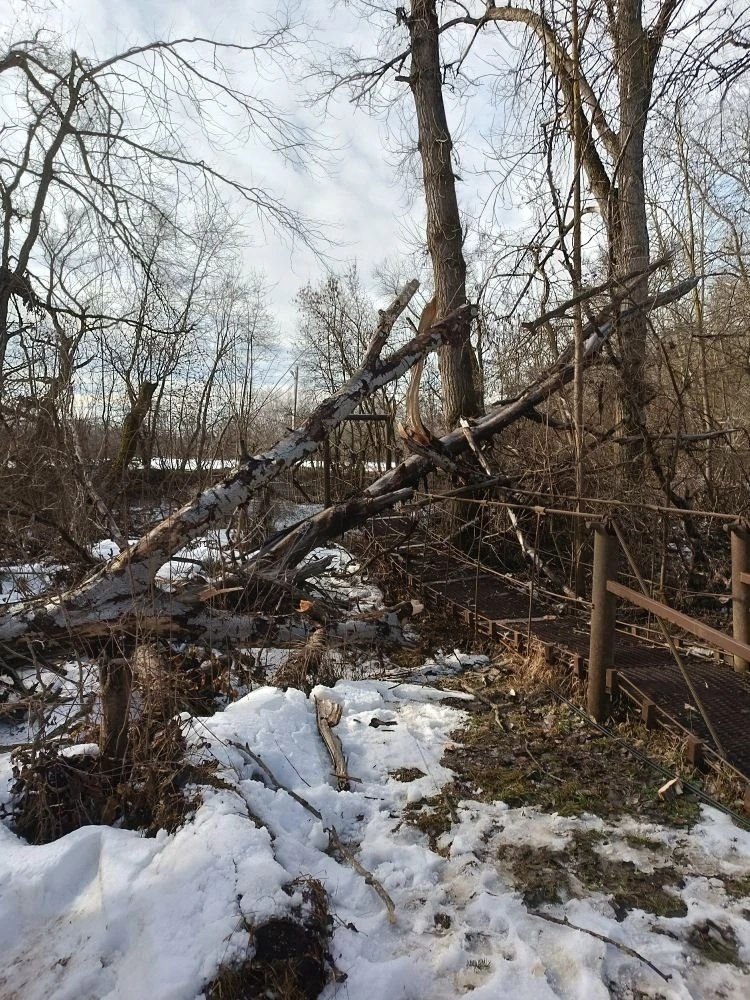 Работники администрации муниципального образования "Сергиевское сельское поселение " провели работу по удалению аварийных деревьев, которые были повалены в результате стихии, на пешеходном мостике через реку Фарс, соединяющем улицы Первомайская и Индустриальная.