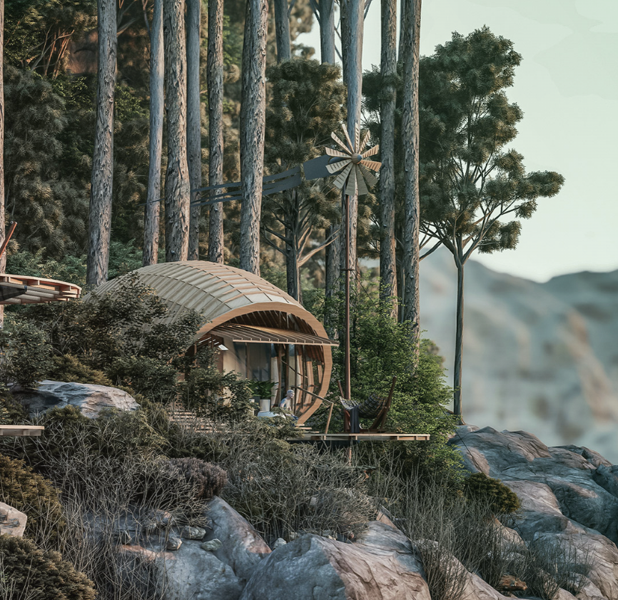 Cabins on the Mountain — концептуальный проект небольших домиков в горах Кубы, разработанный Veliz Arquitecto и ta E. Здесь горная архитектура работает через точную посадку на склон, простую форму и открытую связь с пейзажем. В статье разбираем идею проекта, конструктив и роль визуализации. Cabins on the Mountain расположен на горном хребте в Кубе. Проект разработан в 2019 году и остаётся концептом. Авторы: Veliz Arquitecto и студия ta E. Задача была сформулирована просто: создать компактное убежище для отдыха после подъёма в горы. Объект рассчитан на минимальную программу и прямой контакт с окружающей средой. Объект работает прежде всего с рельефом и панорамами, что и задаёт логику архитектуры в природном ландшафте. Домики размещены на бетонной платформе, которая выравнивает участок и приподнимает объём над неровной почвой. Это решение позволяет избежать сложного вмешательства в склон и сохранить естественный рельеф. Посадка выполнена аккуратно: используется интеграция в рельеф без ма