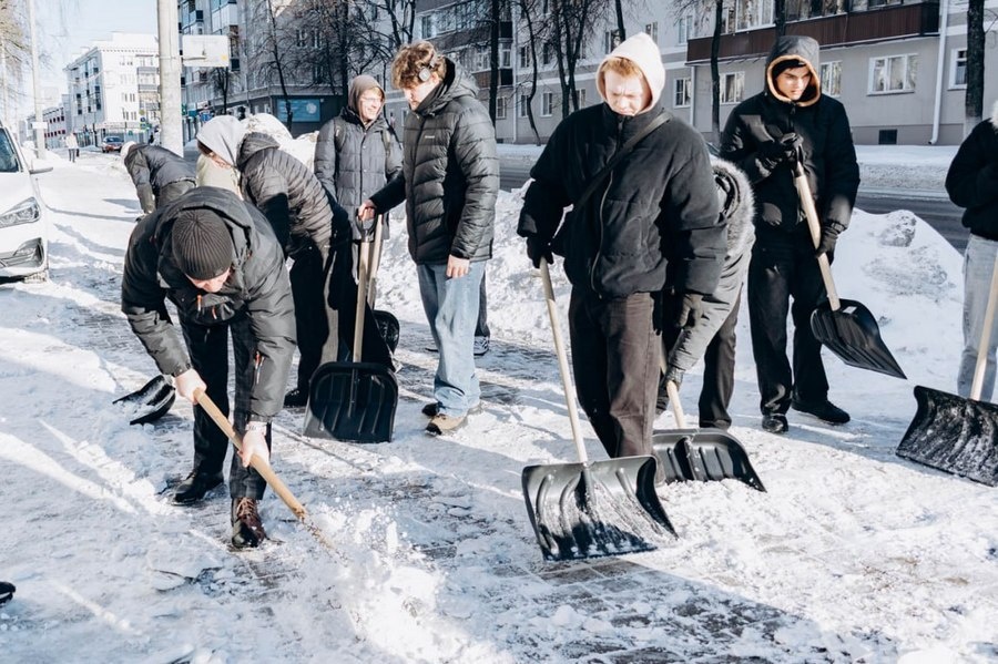 В Гомеле студенты БелГУТ убрали снег на территории университета