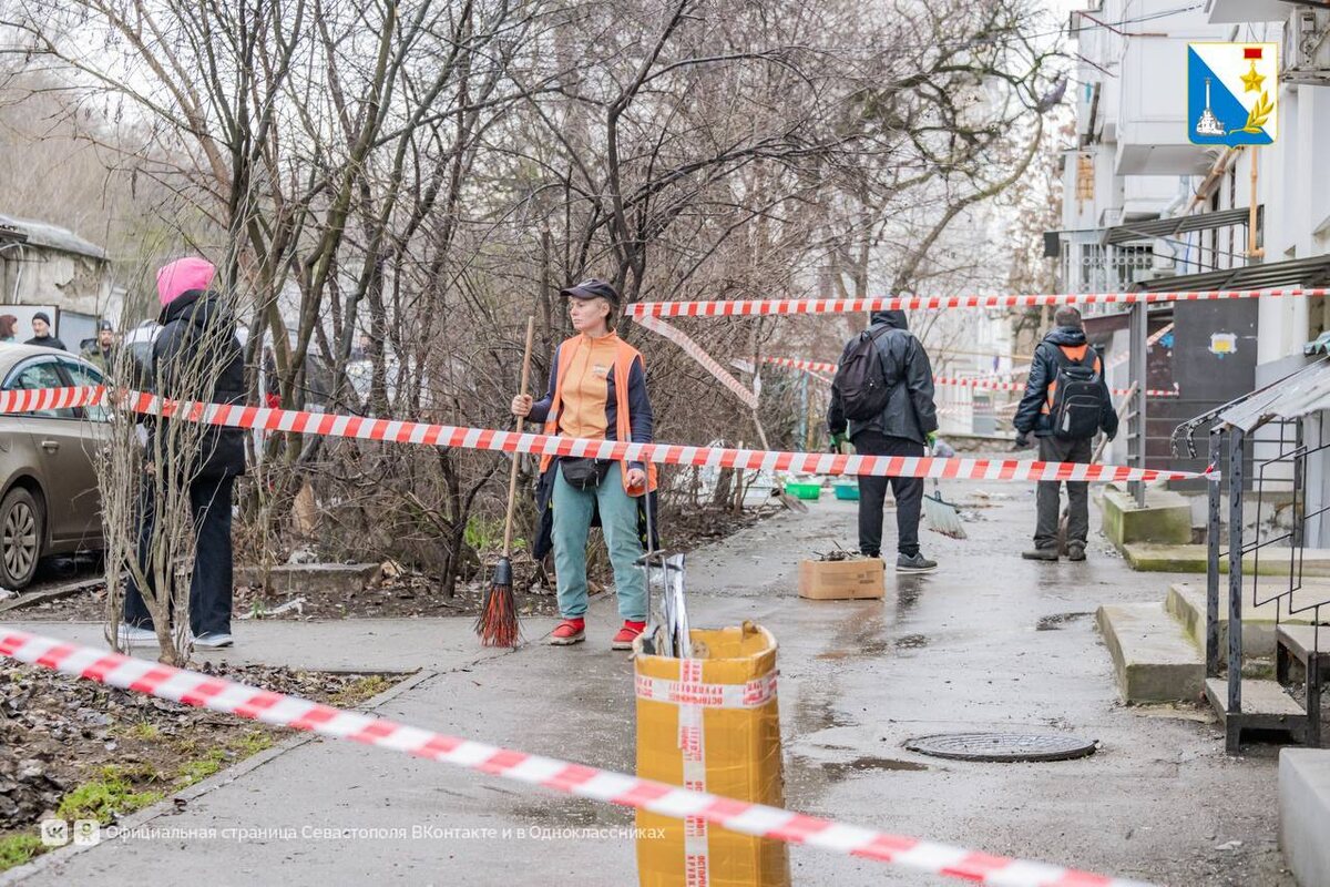 На улице Гоголя в Севастополе собирают осколки от разбитых осколка ми БПЛА окон