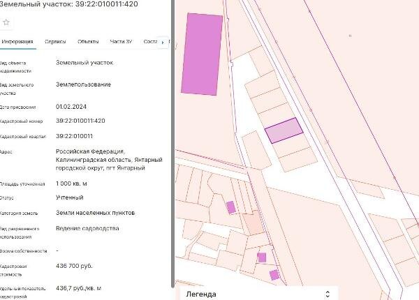 Название: Земельный участок с кадастровым номером 39:22:010011:420 площадь 1000 по адресу Российская Федерация, Калининградская область