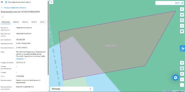 Название: Земельный участок с кадастровым номером 51:04:0110020:614 площадь 2000 по адресу Российская Федерация, Мурманская область