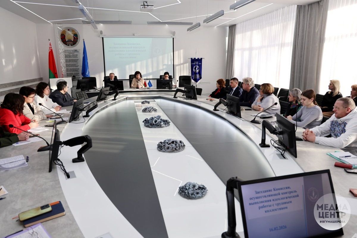 М. Машерова прошло заседание Комиссии, осуществляющей контроль выполнения идеологической работы с трудовым коллективом. В заседании Комиссии приняли участие ректорат университета, деканы факультетов, заместители деканов по идеологической и воспитательной работе, заведующие кафедрами и руководители структурных подразделений. 🔵Перед трудовым коллективом с докладами о выполнении идеологической работы с трудовым коллективом за первый семестр 2025/2026 учебного года выступили: начальник учебно-методического отдела Наталья Николаевна Семечкина, заведующий научной библиотекой Ирина Александровна Качмар, заведующий кафедрой фундаментальной и прикладной биологии факультета химико-биологических и географических наук Инна Ивановна Ефременко, уделив внимание основным направлениям идеологической работы с трудовым коллективом в своих подразделениях. 🔸 Больше фотографий – в группе «Медиацентр ВГУ» ВКонтакте #новости