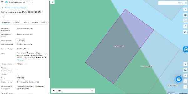 Название: Земельный участок с кадастровым номером 51:04:0020001:425 площадь 1008 по адресу Российская Федерация, Мурманская область