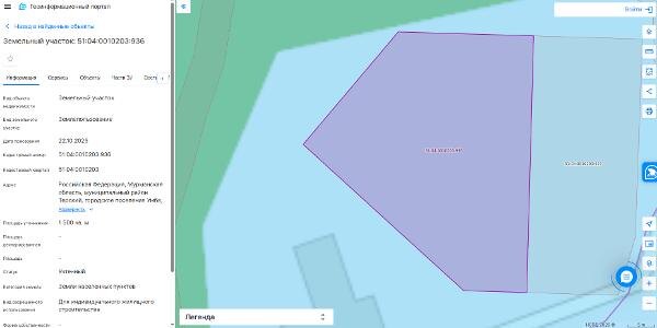 Название: Земельный участок с кадастровым номером 51:04:0010203:936 площадь 1500 по адресу Российская Федерация, Мурманская область