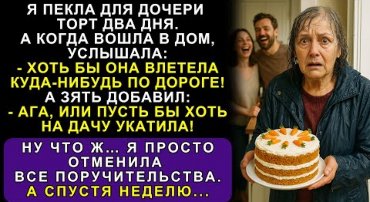 Я пекла этот кондитерский шедевр два дня. Руки сводило от напряжения, спина гудела так, что я не могла разогнуться без стона, но я справилась, потому что цель была важнее усталости. Я так хотела сделать настоящий сюрприз для своей единственной дочери. Дочке Инне исполнялось сорок лет — серьезный юбилей, важный рубеж, и я решила: «Приеду без звонка, без предупреждения, как снег на голову, привезу её любимый торт, крепко обниму и скажу: "С юбилеем, доченька, я тебя люблю"». Я представляла, как она всплеснет руками, как Павел, мой зять, поможет мне снять пальто, как мы сядем за стол...