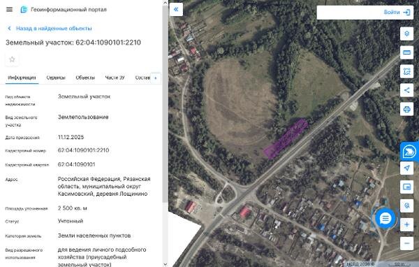 Название: Земельный участок с кадастровым номером 62:04:1090101:2210 площадь 2500 по адресу Российская Федерация, Рязанская область