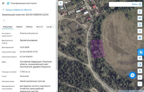 Название: Земельный участок с кадастровым номером 62:04:1090101:2214 площадь 2500 по адресу Российская Федерация, Рязанская область