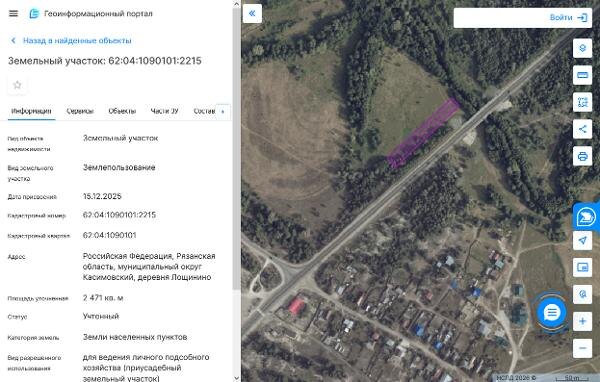 Название: Земельный участок с кадастровым номером 62:04:1090101:2215 площадь 2471 по адресу Российская Федерация, Рязанская область