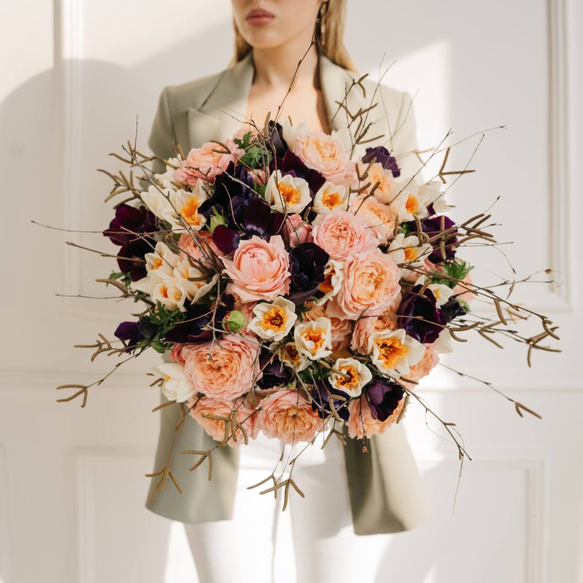 настроения: Яркие солнечные композиции. Тюльпаны ярких оттенков в сочетании с желтыми нарциссами. Зелень фисташки для контраста упаковка в теплых тонах. Микс из первоцветов: тюльпаны, гиацинты,анемоны, ароматные веточки эвкалипта. Контрастная зелень для свежести. Нежные пастельные композиции. Пастельная нежность. Фрезии и ландыши в светлых оттенках. Гипсофилы для воздушности Монохромная гамма в бело-розовых тонах.