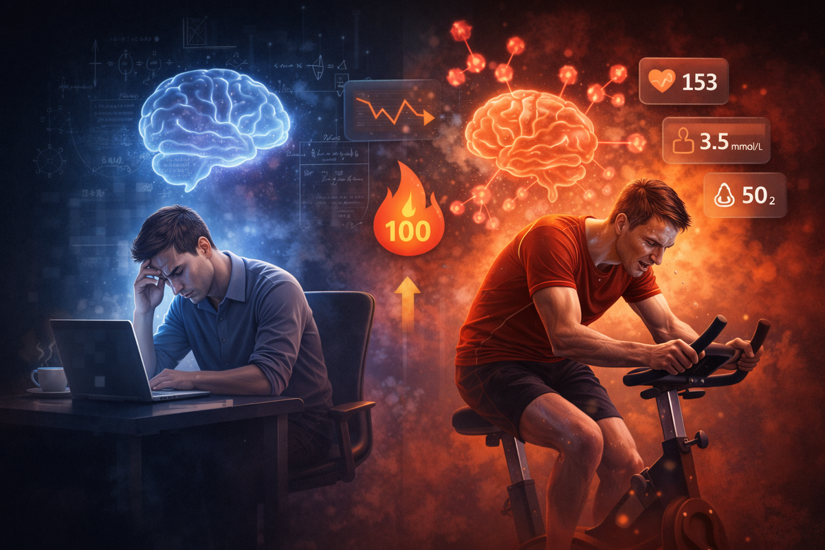Вы провели восемь часов в сложных задачах — код, переговоры, дедлайны. К вечеру чувствуете себя выжатым. Логично предположить: «Ну, я сегодня хорошо поработал — значит, калорий сжёг немало». Увы, нет. Интенсивное мышление добавляет всего 100–200 ккал за день. Это один банан. Но вот что действительно неприятно: умственная усталость способна сократить вашу выносливость примерно на 15% — даже если мышцы, сердце и лёгкие в полном порядке. И это не метафора. Это физиология. В покое мозг потребляет примерно 20–25% всей энергии организма, при том что весит около 2% массы тела. Звучит впечатляюще. Но почти вся эта энергия уходит не на «думание», а на обслуживание системы: ⚡ поддержание электрических градиентов нейронов