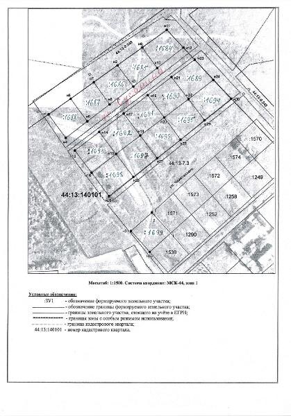 Название: Земельный участок с кадастровым номером 44:13:140101:1694, площадью 989 кв.м., расположенный по адресу: Российская Федерация