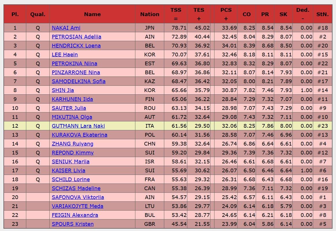 01:00. Аделия Петросян заняла в итоге пятое место в короткой программе. За свой прокат 18-летняя россиянка получила 72,89 балла.