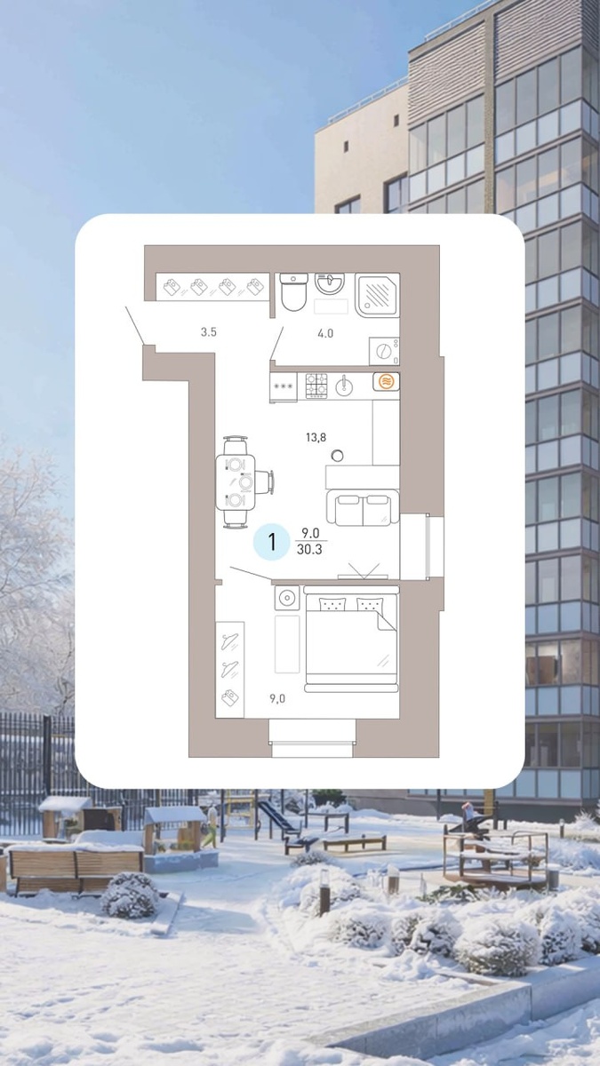 Студия 30.3 м²