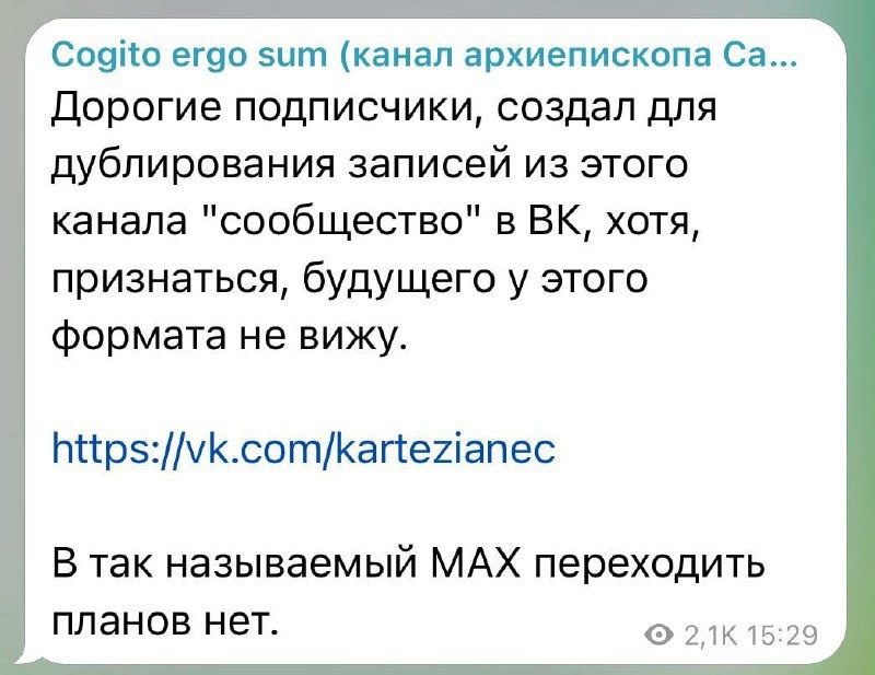 ⚡️ Заместитель Патриарха Кирилла НАОТРЕЗ ОТКАЗАЛСЯ уходить в MAX — об этом духовник написало прямо в своём Телеграм-канале.