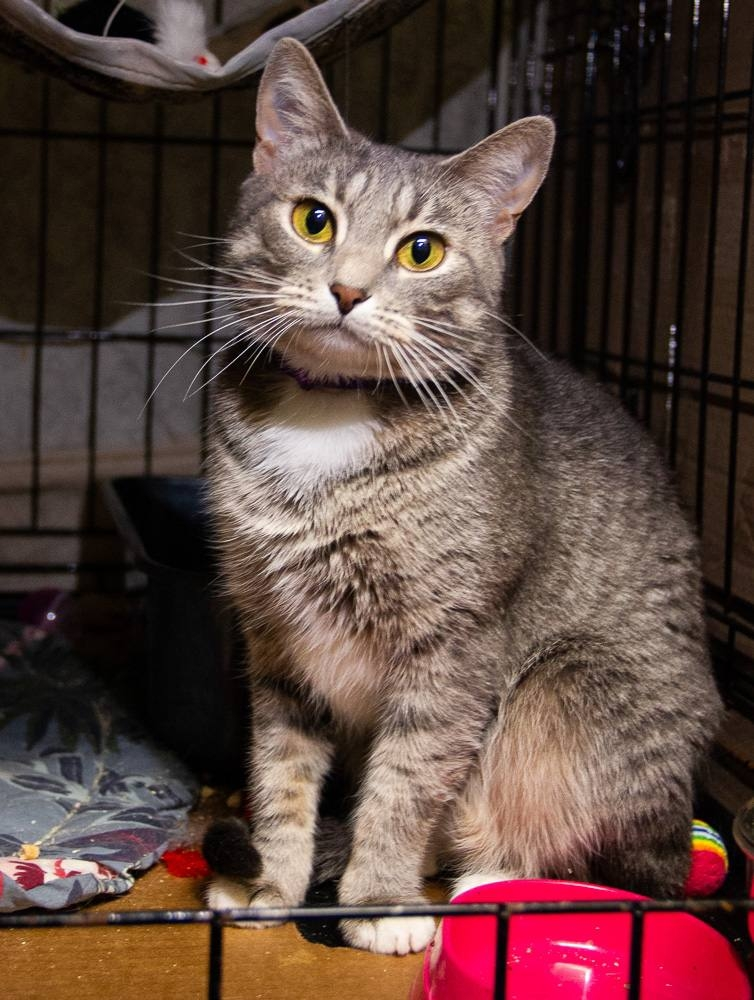 Джессика молоденькая, игривая, активная киса, которой так мало места в приютской клетке, даже большого размера.