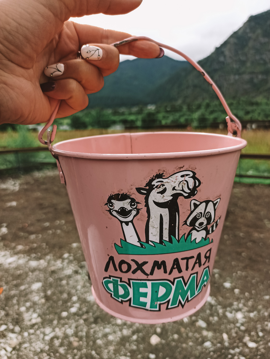 Обязательно надо взять ведерко с кормом, чтобы побаловать животиночку. Кто-то берет вкусняшку интеллигентно, как бы благодаря ща угощение, кто-то, типа одной дерзкой козочки, норовит вырвать из рук всё ведро.