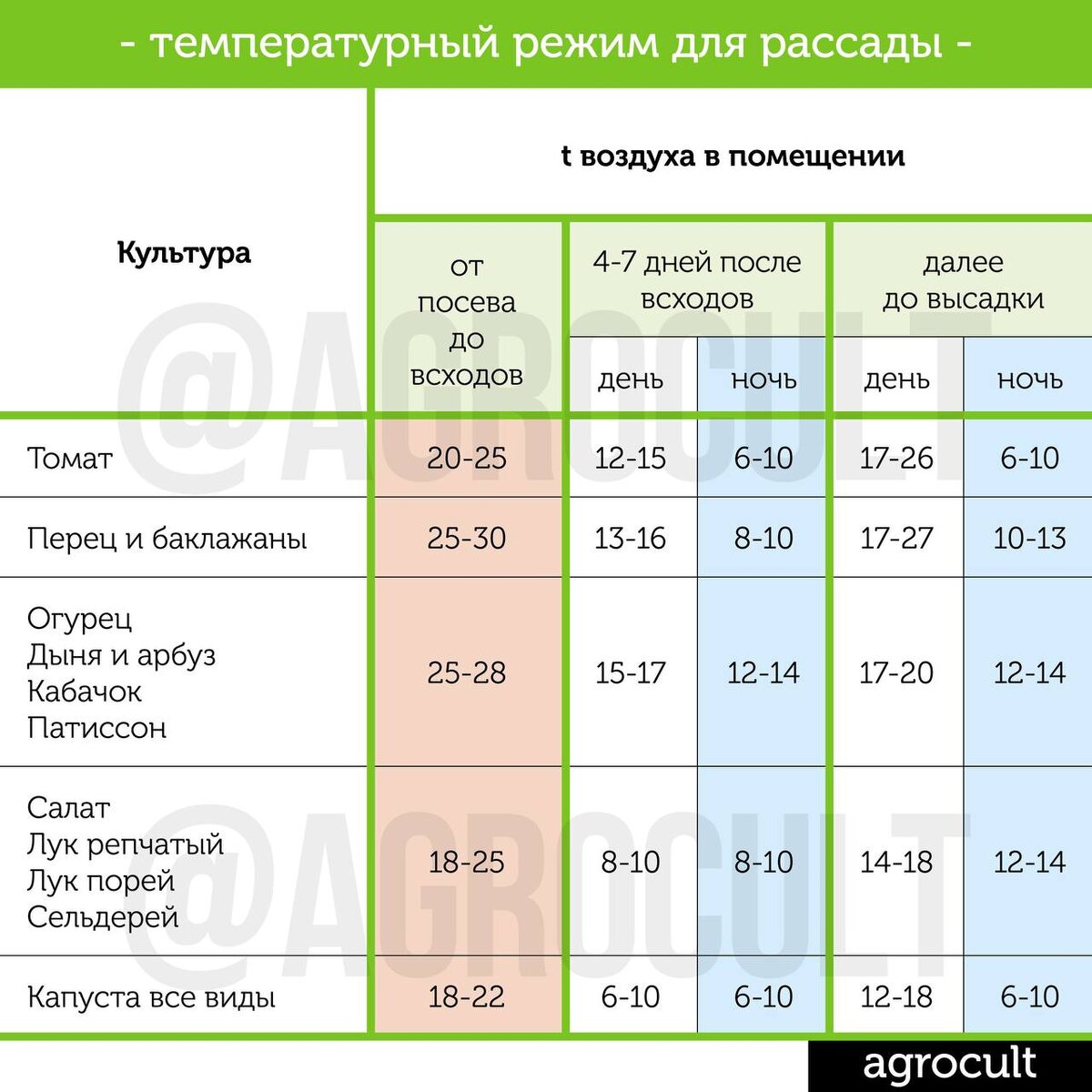 Подскажите пожалуйста для чего проклюнувшимся семена ставите в холодное место? Не падайте. Это я вам еще даю лояльные весьма условия, которые вы можете создать. А настоящие — вот.👆 Таблица создана мною на основе учений Германа Ивановича Тараканова — доктора с/з наук, профессора, академика и зав.кафедрой Тимирязевки. Кстати, он был еще и поэт. По его учебникам студенты учатся до сих пор. 📌Так как же это работает? Холод (понятие относительное и составляет всего лишь 15°+, а не вечную мерзлоту) при петлях — это классика жанра в агрономии. Я всё это корректирую, в виду выращивания на начальном этапе не в земле, потому предлагаю температуры повыше, ввиду большей уязвимости корней в самокрутках. Условно, это поможет растениям «понять жизнь» — запустит процессы выделения АТФ (Аденозинтрифосфорной кислоты — источника энергии для всех биохимических процессов), т.е. повысит биологическую энергию, физически сделает растения более стойкими и выносливыми, повысит иммунитет, рассада на уровне
